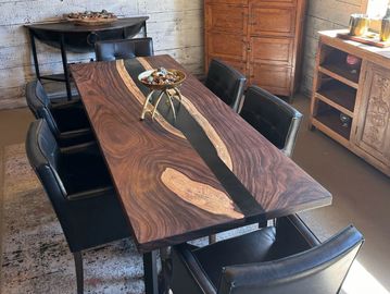 Acacia table slabs with resin are available, with a variety of resin colors to choose from.